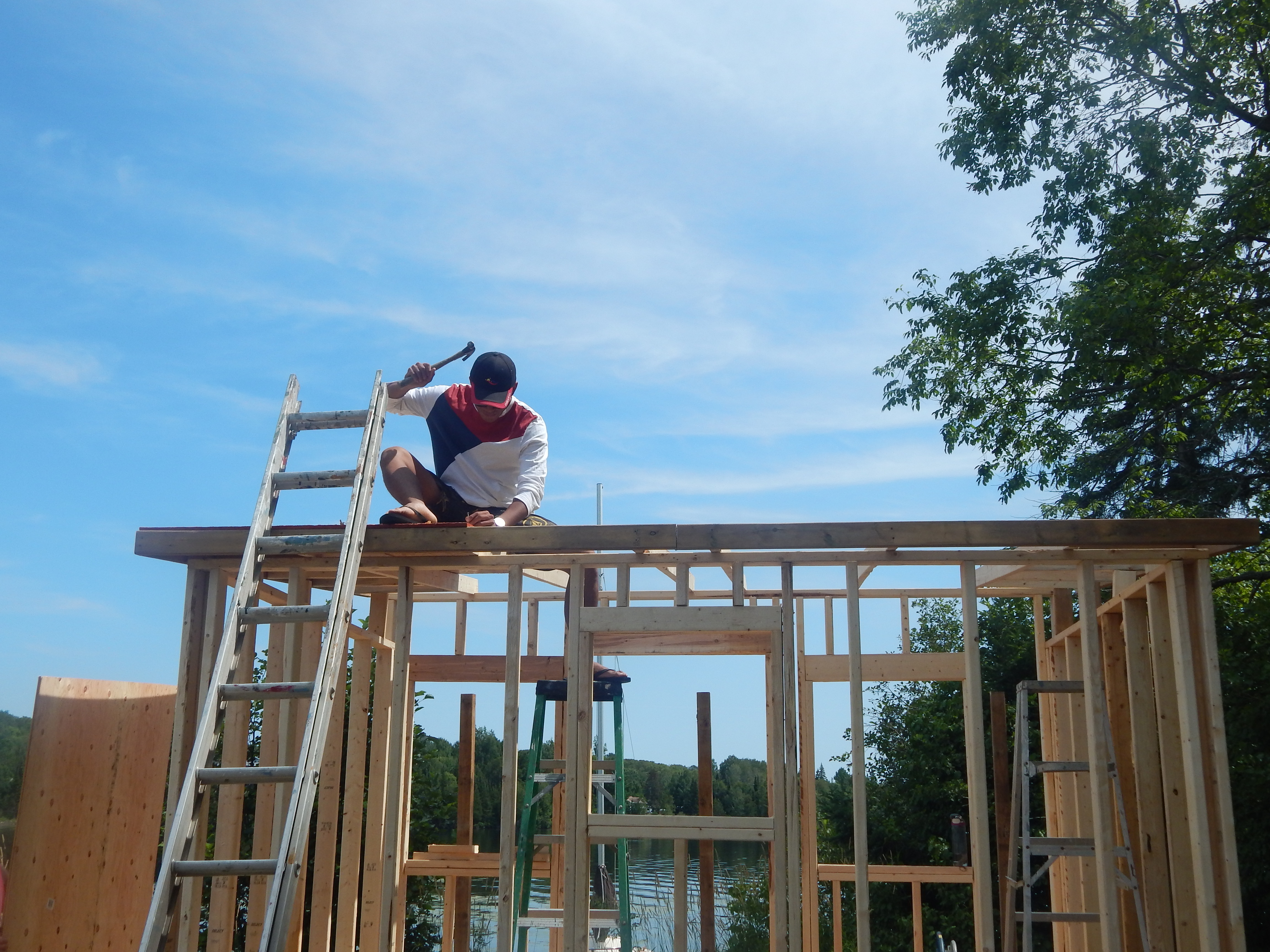 Me and Jim could not work on the cabin together because it was still early and some guests might have been still sleeping. So we went and fix cabin 9’s bed and checked the tiny cabin to get a better understanding of how to build the roof. At our return we had brunch with all of the people who have kids. It was a nice brunch since I got to eat a lot and had some meat since a long time (though it has been just few days really). Moreover, I had some vegan pancakes with maple syrup. What can be more Canadian than having maple syrup? The food was enough to give me the energy to work on the cabin.