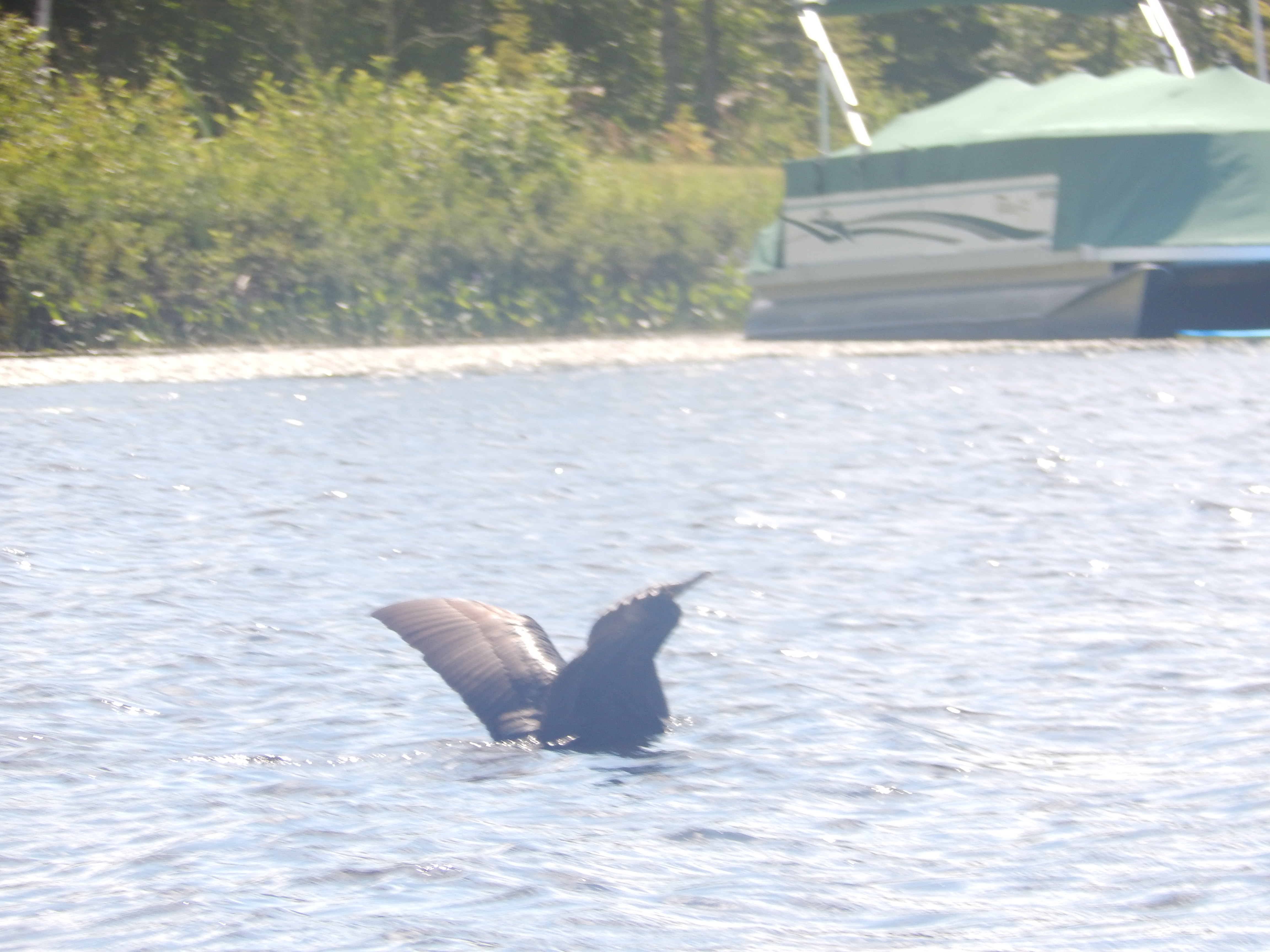 I kept teasing Laila about tipping the canoe over, but I had lot of stuff in it so my teasing was not effective. During the return we saw a black pharaoh posing for us. I got a shot of it but it was so far and we were worried of scaring it if we just rowed closer to it. So I used my camera’s zoom. The picture in itself is nice, but obviously the details were a little bit off.