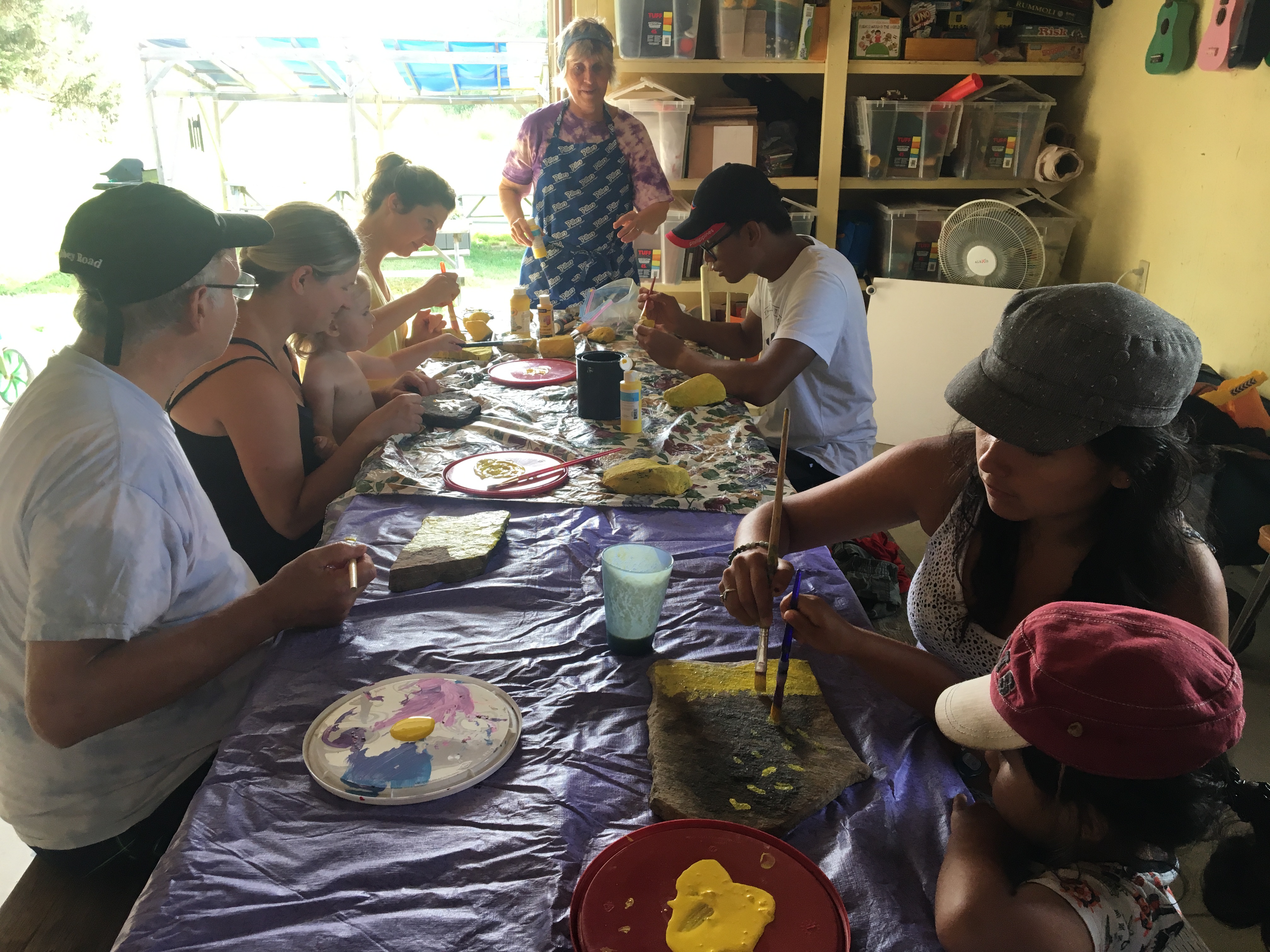 After lunch, we had plenty of activities going on. First we painted the rocks yellow and black for the “Bee activity”. The goal of the activity was to paint the rocks as mentioned and write something on it starting with “Bee” (so for example “Bee unique”, “Bee yourself” etc) to place the rocks all around the camp. I helped with giving a first and a second layer of yellow on the rocks.