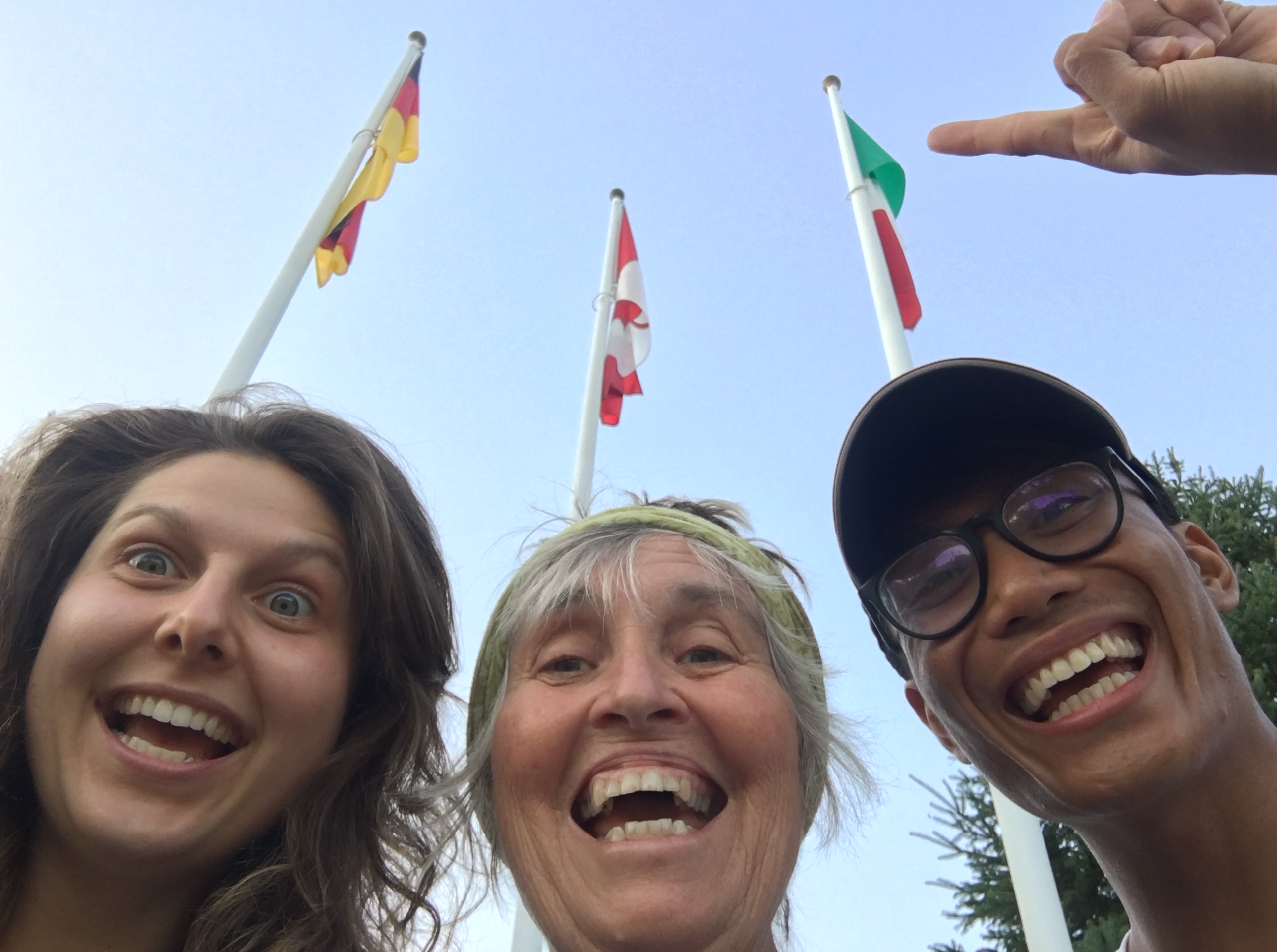 We thought we could finally get back home to work on our own stuff since we do not get so much free time during the day at the camp, but Fran wanted to stop by the flags. Therefore, we made a detour and stopped by the flags. After the fight for the corn Laila just kept laughing for everything and it seemed like she was so drunk. She admitted that she was really tired but still it was funny to see her laugh that much for no reasons. We took some pictures and filmed some videos at the flag. We laughed about Germany and Italy being right next to Canada’s flag. They were there to celebrate this year’s G8 summit in Canada. We took a selfie as soon as the wind started to blow a little and it was even funnier the fact that all of the flags started waving except for the German one. We finally made it back at the camp and it makes me smile that I almost wrote “back home”. The ride back was a fight against my sleepiness just to hear Fran and Laila talking to each other and sometimes to me. The landscape and the sky were beautiful though, as the magical sunset standing right on the horizon line and everywhere around us. Its colors were really beautiful and well blended.