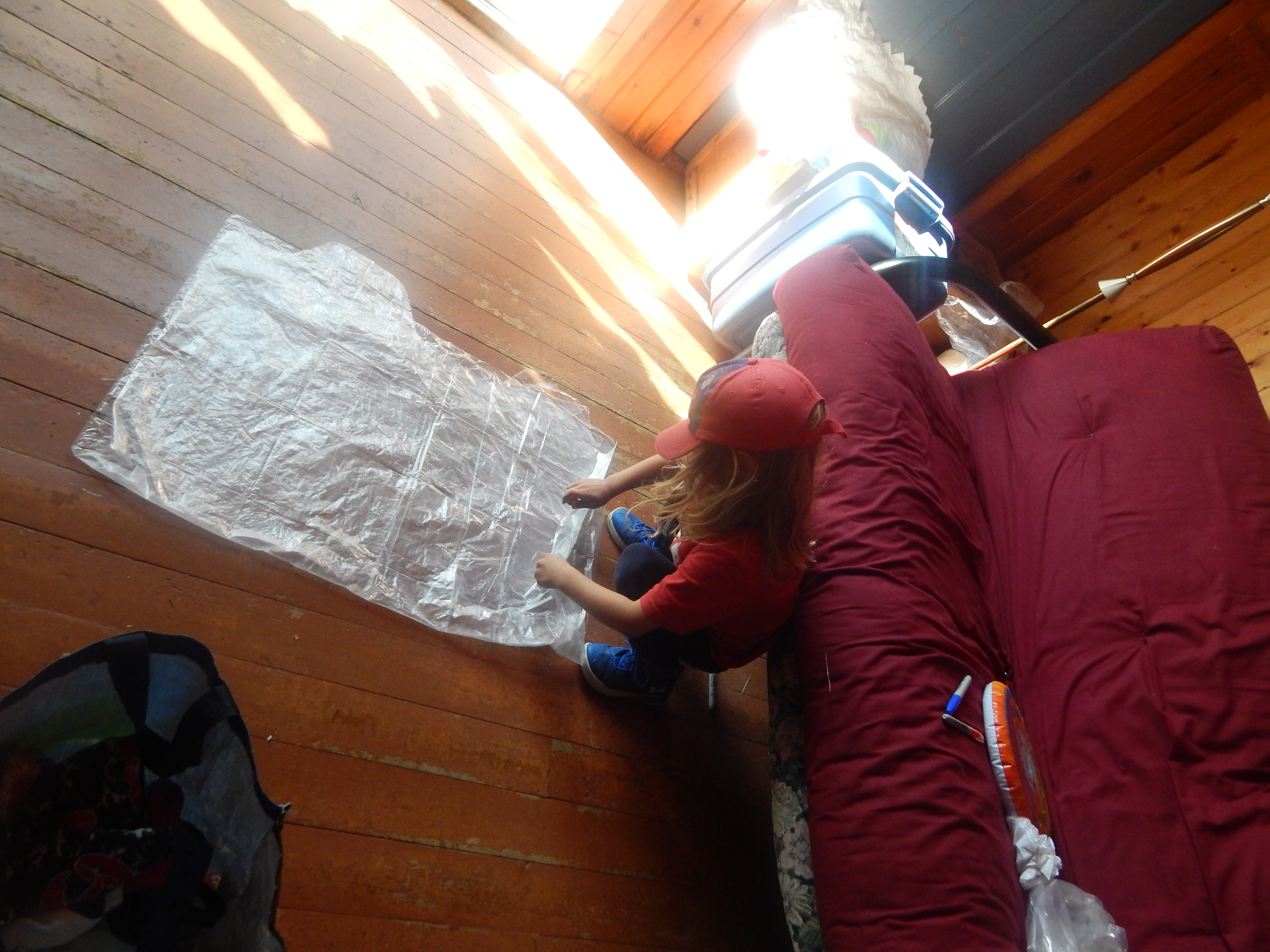 Done with the breakfast me, Laila and Larry helped Fran to clean cabin 9 because it was too early to start nailing and drilling since the camp’s guests were probably still sleeping.