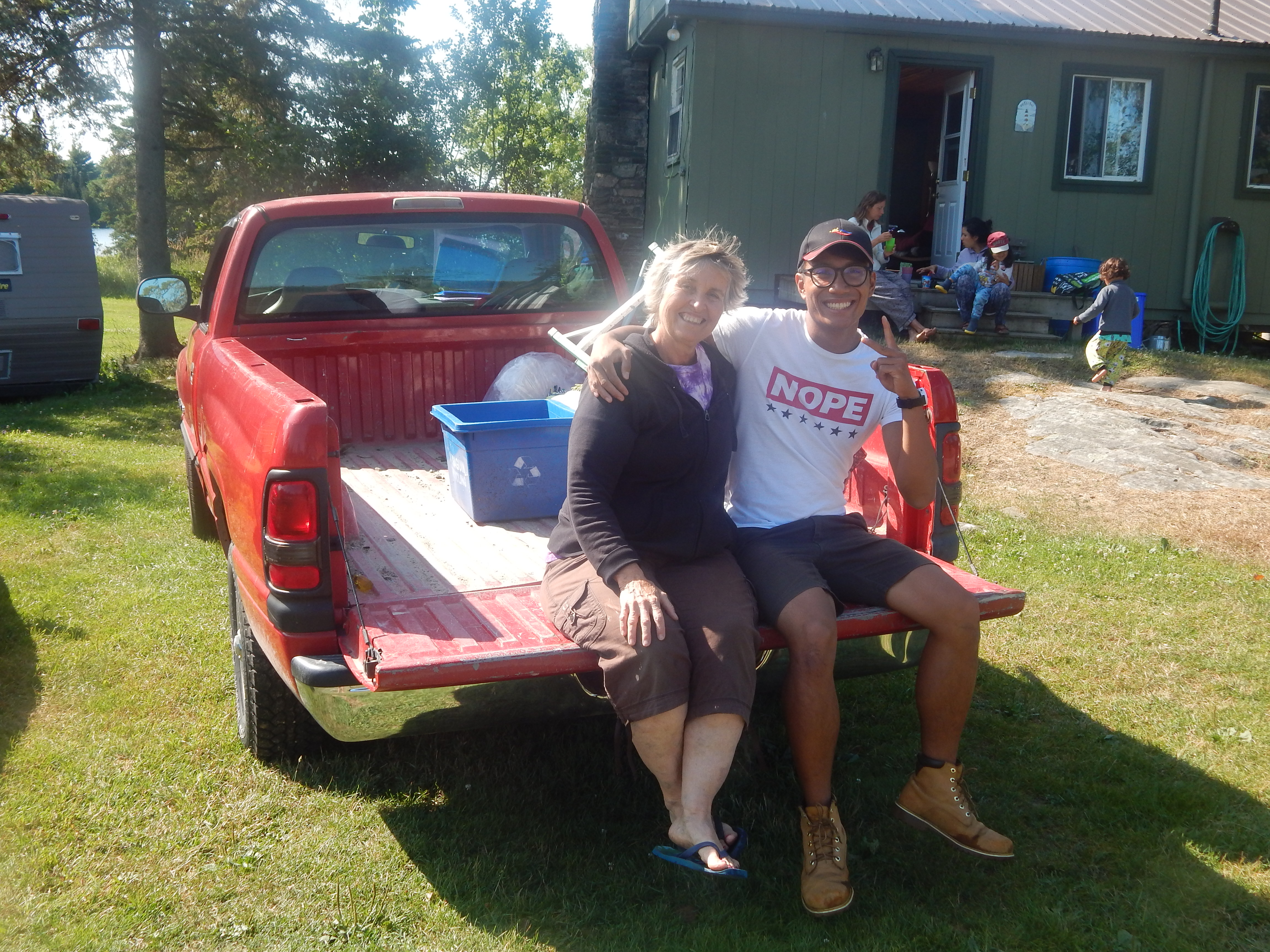 It was the first time I rode on a truck and I did it on the back like a real American (in this case Canadian)! It was a bumpy road but it was so funny and amazing because I got to do what I always watched in the movies. At the cabin I basically just cleaned the windows with a liquid based on vinegar. I think I smelled like vinegar after the cleaning. Then me and Laila had to check out the outhouses. For those who wonder, an outhouse is a little cabin where people can pee or poo but it has no flushing water. So you just do your stuff, wipe with the toilet paper and then shove some sawdust on your poop. We had to refill all the bins that were lacking sawdust. I told Laila about my germophobia and she encouraged me by saying that she has a fish phobia but she actually swim anyway in the lake. I remembered she laughed when I replied by saying “I am going to wash my hands ten times when we get this job done”. I did not.